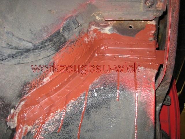 Es stand die Frage nach einer Teillackierung oder komplett. Wir haben uns aufgrund des Lackzustandes (Rot bleicht auch sehr aus) für eine Neulackierung entschieden.